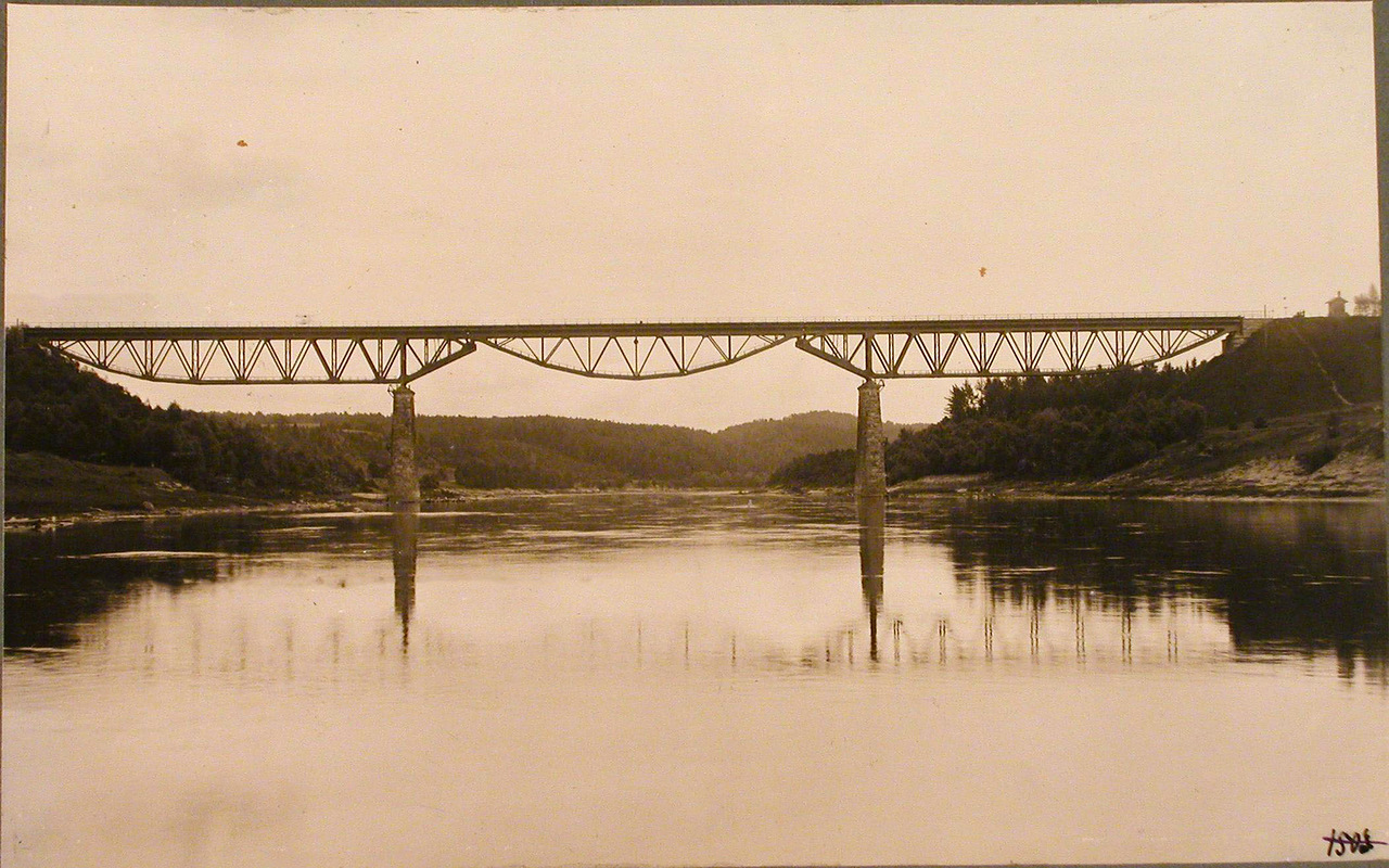 Geležinkelio tilto per Nemuną vaizdas apie 1912 - 1915 m. The view of the railway bridge across the Neman arround 1912 - 1915 Вид железнодорожного моста через Неман около 1912 - 1915 г. |